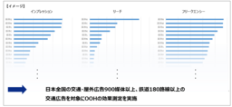 ドコモが保有する1億規模の会員基盤データや、「モバイル空間統計®」※6および「docomo Sense®」※7を用いてDOOHにおけるインプレッション、リーチ、フリークエンシーを計測し、それぞれの計測データを活用して、OOHの効果測定を行うためのインプレッション※1、リーチ※2、フリークエンシー※3の広告指標を作成しました。これにより、本実証実験においてサントリーが出稿したすべてのOOHのインプレッション※1、リーチ※2、フリークエンシー※3の算出を行いました。