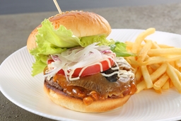 ■ビーフバーガー:成田の地酒・老舗の味噌が香る和風リッチな一品