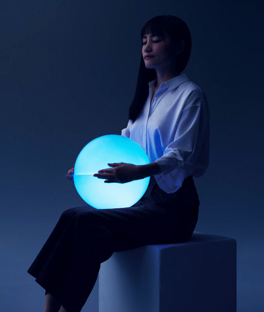 「SOUND HUG(サウンドハグ)」は、抱きかかえることで音楽を視覚と触覚で感じられる球体型デバイスです。楽曲全体の音・特定の楽器の音をMIXして、球体に内蔵された振動スピーカーで再生することで音楽の振動を触覚で感じることができます。また、音楽に合わせて球体が発光する仕組みになっており、振動だけでは伝わりづらい曲の旋律を視覚でも感じることができます。