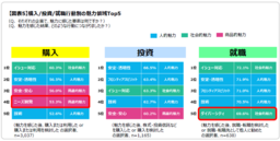 そこで、購入/投資/就職の各行動に“共通する魅力”と、それぞれの行動で“異なる魅力”が見られました。