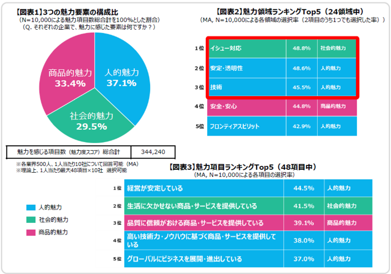 魅力領域別では「イシュー対応」「安定・透明性」「技術」がTop3