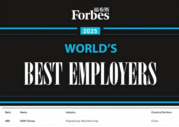 BEIJING, Oct. 16, 2025 /PRNewswire/ -- With its continued focus on employee care, talent development, brand building, and globalization, SANY Group has once again secured spots on both the Forbes and World Brand Lab lists, being recognized as the 2025 World's Best Employer and the 2025 Asia's Most Influential Brand, respectively. These accolades highlight SANY's robust global competitiveness and growing brand influence.
