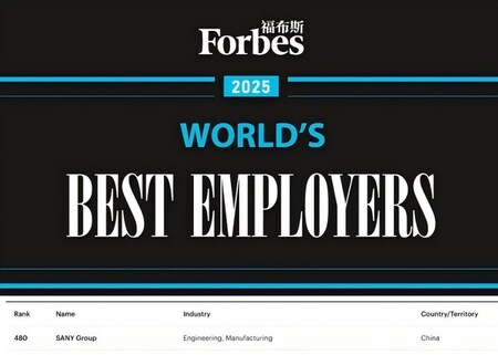 On October 9, Forbes officially released the 2025 World's Best Employer List. SANY Group has made the list with its outstanding practices in employee care, organizational building, and career development, ranking 21st among Chinese mainland enterprises and 480th globally and retaining the top position in China's construction machinery industry.