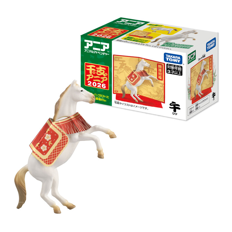 株式会社タカラトミー(代表取締役社長:富山彰夫/所在地:東京都葛飾区)は、来年の干支をモチーフにした、動かして遊べる手のひらサイズのアクション付き動物フィギュア「干支アニア 午(ウマ)」(希望小売価格:770円/税込)を、2025年11月8日(土)から全国の玩具専門店、百貨店・量販店等の玩具売場、インターネットショップ、一部の書店、タカラトミーの公式ショッピングサイト「タカラトミーモール」(takaratomymall.jp/)等で発売します。また、本商品はアジア8の地域(日本、中国、香港、台湾、シンガポール、フィリピン、タイ、ベトナム)でも発売予定です(日本以外の地域は順次入荷)。