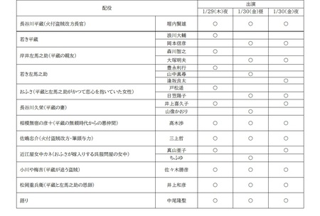 プレミアム朗読劇「鬼平犯科帳 本所・桜屋敷」配役一覧表
