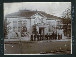 石川県の公共図書館は、明治12年(1879)、石川県勧業博物館内に図書室を設置し、前田家蔵書3万余冊を中心に公開したことに始まる。明治36年に図書室を新装したとされることから、この写真は新築された勧業博物館図書室のことで、前田家図書館と呼ばれていたようである。設計者は松任外次郎と記されている。明治41年(1908)、前田家の希望により蔵書を返却することになり、勧業博物館図書室は閉室された。しかしこれがきっかけとなり、長谷川邸跡(現時雨亭付近)の石川県物産陳列館の隣に、県立図書館が設置されることになった。