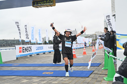 昨年、「Ultra BOLIVIA Race 220km」で優勝を果たしたウルトラランナー・尾藤朋美さんは「フルマラソン」に2年連続の参加。「今日は朝、雨が降っていたのでお天気が悪くて悲しいなぁって思ってたんですけど、沿道の温かい応援があったり、ボランティアスタッフさんの温かい声援とラッキー給食が最高だなって思いました。エネルギーチャージしながら42.195kmを走ることができました」と振り返りました。