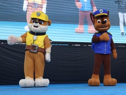 FINISH STAGEでは、トップランナーのインタビューや表彰式に加えて、フルマラソン化から10周年を記念し、豪華ゲストが続々登壇。「パウ・パトロールとあそぼう!」ステージには、チェイスとラブルが登場し、集まった大勢の子どもたちとともに元気にダンスを繰り広げるなど、フィニッシュエリアを大いに盛り上げていました。