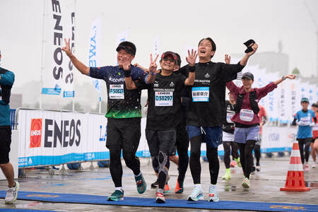 応援ゲストもランナーとして参加。横浜出身の長距離ランナー信櫻空さん、俳優の谷原さんが「私はフルの経験がないので、少しですけどフルマラソンの方と一緒に走れたのが貴重な経験になりました」「地元で一番好きなのがみなとみらいの大観覧車や赤レンガで、その前の道路を走ると、その景色を独り占めしている感覚になれて、走っていて楽しかったです」とコメント。