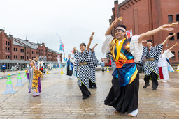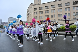 「横浜マラソン」の名物となっているのが「給水パフォーマンス」と「ラッキー給食」。「給水パフォーマンス」は、各給水所で“ランナーを元気づける”をコンセプトに応援パフォーマンスをいろんな団体、グループが披露。ダンス、チアダンス、ハワイアンダンス、サンバダンス、吹奏楽、ゴスペル、ビッグバンドジャズなど、バラエティーに富んだ内容でランナーたちを応援しました。