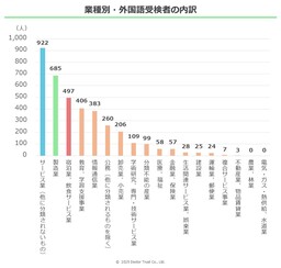 外国語受検者がもっとも多い業種は「サービス業」「製造業」「宿泊業・飲食サービス業」