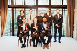 画像上段左から:2024年度受賞者Lina Yao氏、2024年度グランプリ永島一樹氏、Science編集者Caroline Ash氏、Noster株式会社代表取締役CEO北尾浩平、Science Roger Goncalves氏