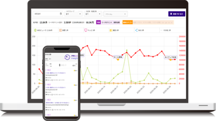 また、報道状況と各種経営指標を一つのダッシュボードに統合し、相関関係を可視化する機能も搭載。ご契約社様保有の各種アウトカムデータ(サイトアクセス状況、POSデータ、株価、採用エントリー動向など)をインポートすることで、広報活動のどんな取り組みがどの程度、経営活動に貢献したのかを考察いただけます。