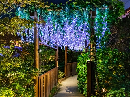 人気のフォトスポット・藤棚が夜は光の花に変身。