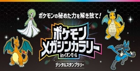 | 【特別企画】メガシンカラリーに参加してステッカーをもらおう! ・内 容:対象のイオンモールでメガシンカラリーに参加し、すべてのポケモンを「メガシンカ」させると2日間限定で特別なステッカーをプレゼント!(なくなり次第終了) ・期 間:12月13日(土)・14日(日) ・対象モール:特設ページにて順次公開します。(https://online-event.aeonmall.com/pokemon/) ※ステッカープレゼント対象は12月13日(土)・14日(日)当日にクリアした方のみとなります。 開催日以前に参加された方も再度ご参加頂くことが可能です。 ※引き換え時間、場所等の詳細は追って対象モールのHP に掲載します。