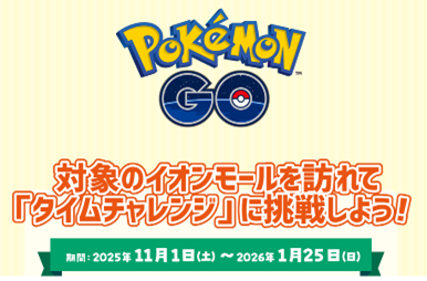 ・内 容:ポケモントレーナーにとって欠かせない3つのチカラをイオンモールを巡りながら鍛える、特別なとっくんメニューに挑戦しよう!