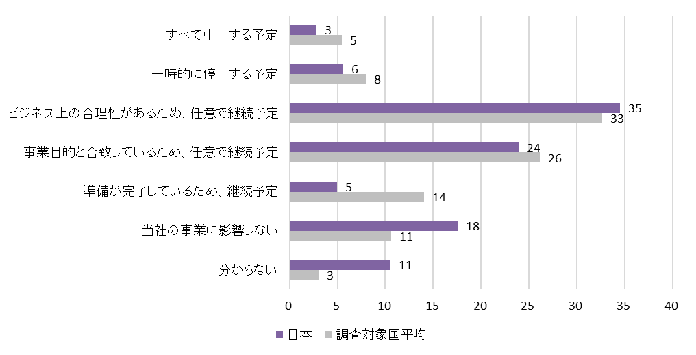 日本においても、回答企業の63.3%が「サステナビリティ報告を継続する」と回答している。