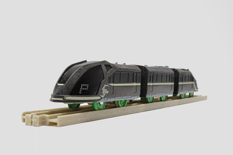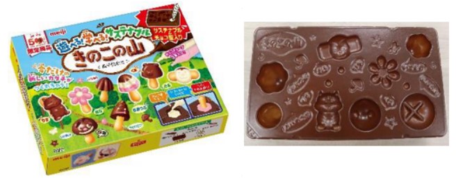 「カカオバイオプラスチック」は、当社と株式会社ヘミセルロースが共同開発した、カカオの種皮を配合した樹脂素材です。環境負荷の面では石油由来プラスチックと比較して、CO2排出量を30~60%削減することが可能で※2、物性の面では硬さと柔軟性を両立している点を特長としており、幅広い分野への展開が期待されています。すでに当社品「遊べる!学べる!サステナブルきのこの山」のトレーの材料に採用しており、玩具(株式会社タカラトミー「プラレール」)や筆記具(ゼブラ株式会社「サラサクリップ」)など※3にも使用されています。