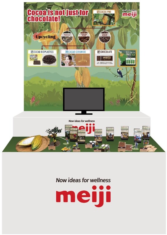 この度展示する「カカオバイオプラスチック」や、「カカオセラミド」に代表されるカカオの未活用部位から新たな価値を生み出す取り組みは、CO2排出量の削減やカカオ農家の収益向上を促し、循環経済の実現や気候変動の課題解決に貢献する当社の重要な使命です。当社はこれからも、「メイジ・カカオ・サポート」に代表されるカカオ産地の支援活動を深化させ、カカオの生産調達にとどまらず、アップサイクル技術による未活用部位の付加価値化を行い、カカオの持続可能性に貢献してまいります。