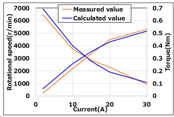 さらに、ミツバが強磁性窒化鉄系磁石を車載電装モータ(*6)として設計・評価した結果、モータの特性において、試験片で得られた磁気特性を考慮した計算値と実測値がほぼ一致することを確認しました。
