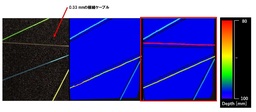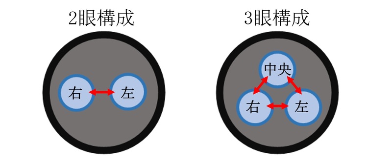 ・3つのレンズ構成により、左右のレンズ間の方向に平行に配置された細い物体であっても、その距離や大きさを正確に測定できる