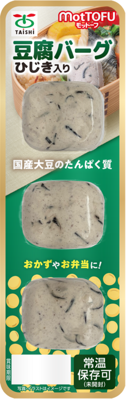 2)豆腐バーグ ひじき入り(3個入り) 豆腐とひじきを使った惣菜タイプの豆腐バーグ。忙しい朝やお弁当作りに便利な「すぐ使える」「常備できる」おかずとして、栄養バランスと時短を両立しました。