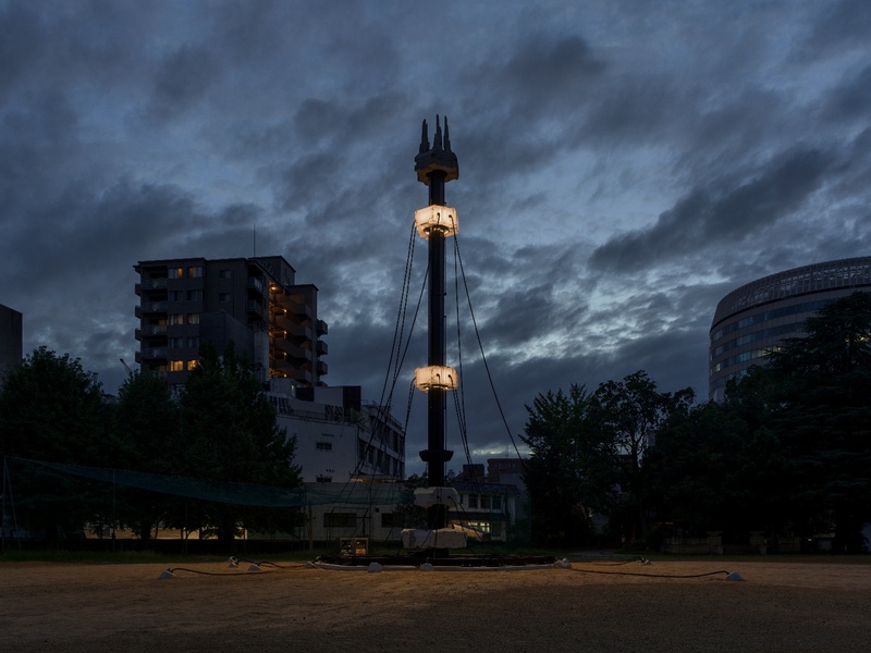 4回目となる3年に1度の国際現代美術展「岡山芸術交流2025」のシンボルでもある高さ13.6mの光を放ち、声を発する巨大立体作品。学習型AIと複数のセンサーを搭載し、機械の体と人間の心を持つ存在として制作。温度、湿度、風、地殻振動などの環境データを収集し、期間中変化していきます。声は俳優・石田ゆり子が担当。
