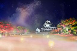 岡山城一帯で行われている期間限定のライトアップイベント。天守前広場では、紅葉と雲海をイメージしたライトアップを実施します。期間中、夜間特別開館を行うとともに、天守前広場にて茶屋や兜着用体験、書道体験など和文化体験イベントを行います。