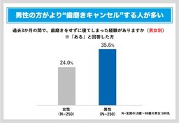 ※本調査では「過去3ヶ月の間で、歯磨きをせずに寝てしまった経験がある」人の割合を「歯磨きキャンセル率』と定義しています。