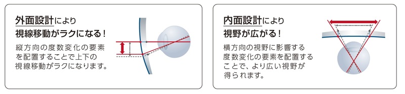 ・慣れやすい:遠近両用独特のユレ・ユガミに敏感な方でも違和感が少ない。