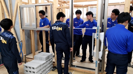 リフォーム、オール電化、太陽光発電システム等の取り扱いには専門知識と高度な技術が必要です。リフォームから省エネ・節電関連まで幅広くお客様にご提案できるように、リフォーム・エコキュート・太陽光発電システムなどの研修センターを全国4箇所に設置し、工事担当者への効率的・効果的な技術研修だけでなく、営業担当者も含めた「販・工」一体の教育・研修を実施しております。