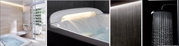 LIXILの最新バスルーム「スパージュ」は、“湯を、愉しむ。時を、味わう。”をコンセプトに、肩湯や打たせ湯、オーバーヘッドシャワーなどを搭載。自宅にいながら温泉のような癒し空間を堪能できるリラクゼーションバスです。スパージュのライン照明が壁面の陰影をやわらかく引き立て、上質なリラックス空間を演出します。