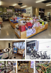 地域物産コーナーでは、市内のお土産のほか、韮崎産や県産ワイン、桃やぶどうなどの季節のフルーツや新鮮野菜を販売しています。