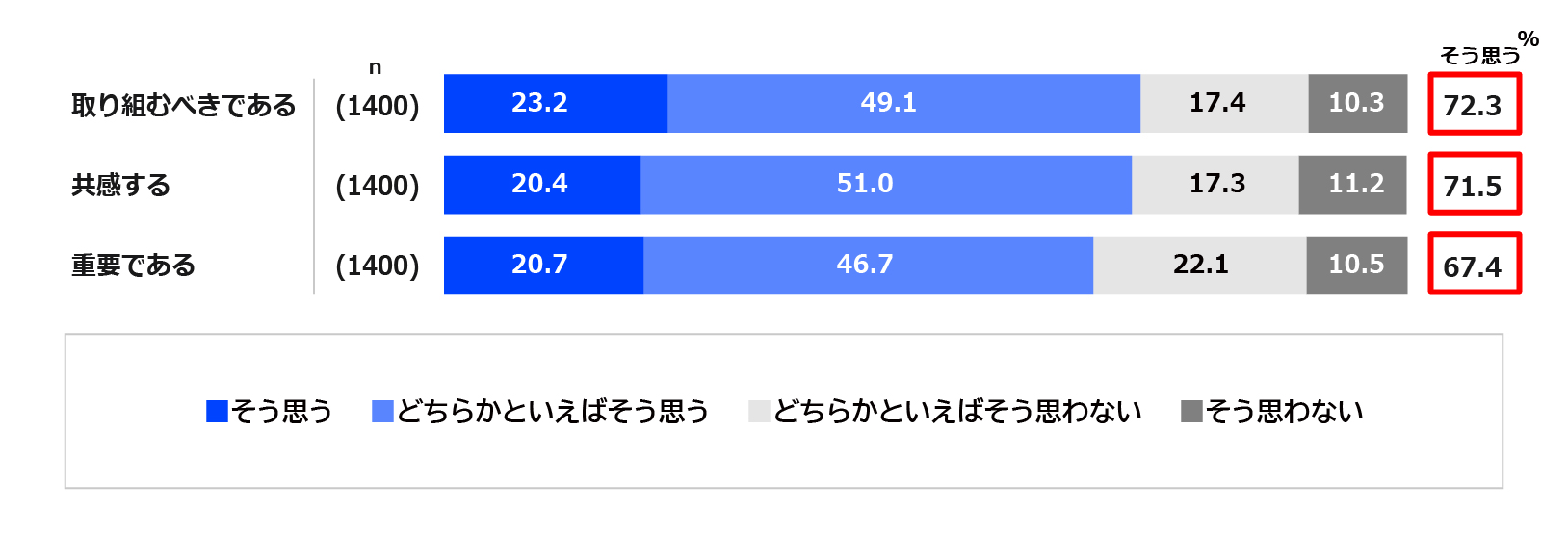 むべきである、共感する、重要であると考える人はいずれも約7割。