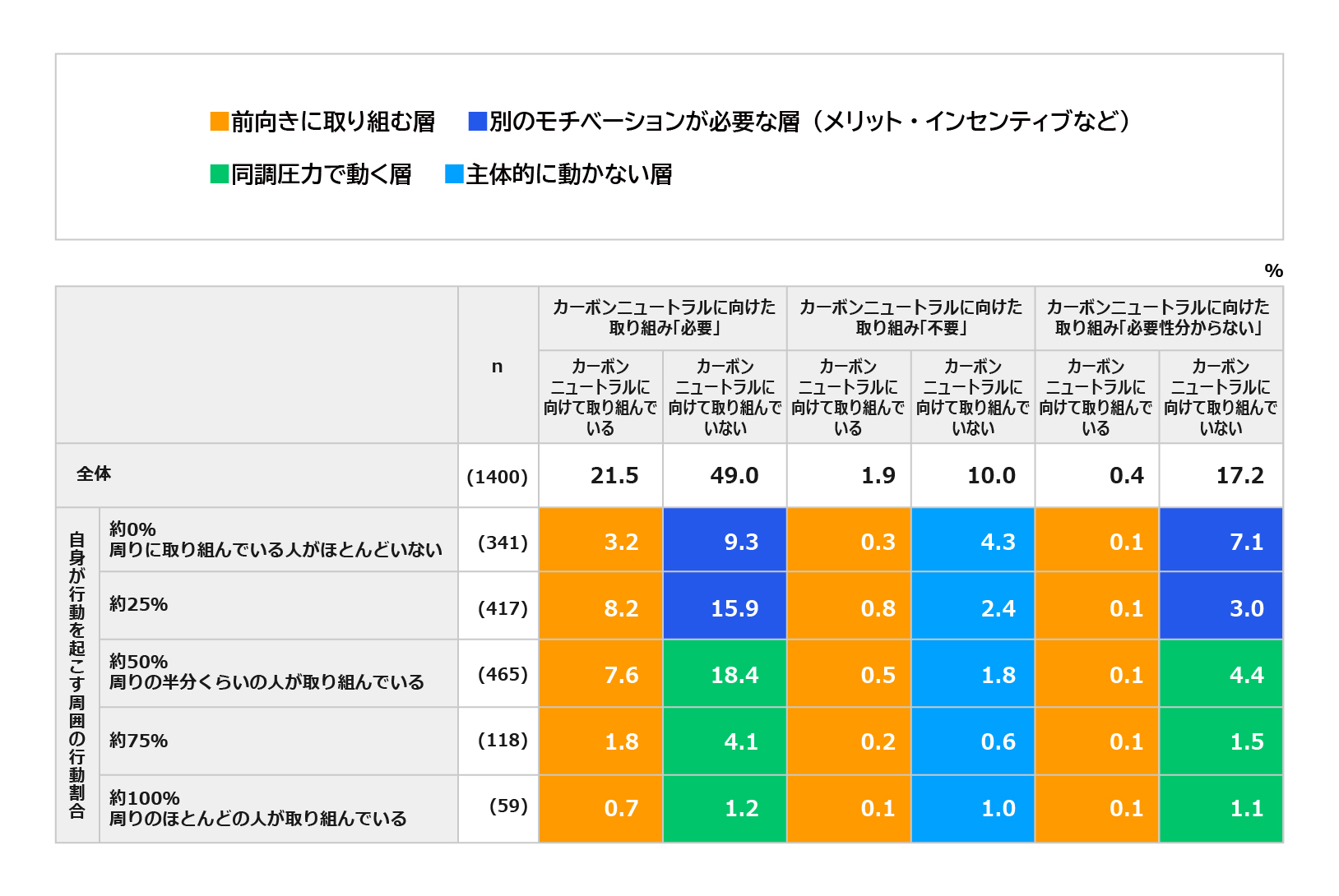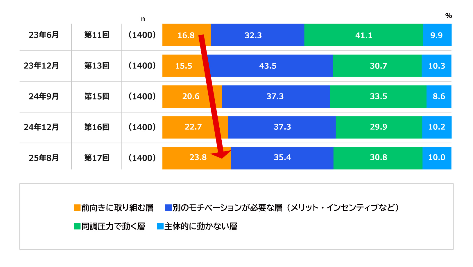 インセンティブなど)」「同調圧力で動く層」「主体的に動かない層」)を抽出。【図表1】