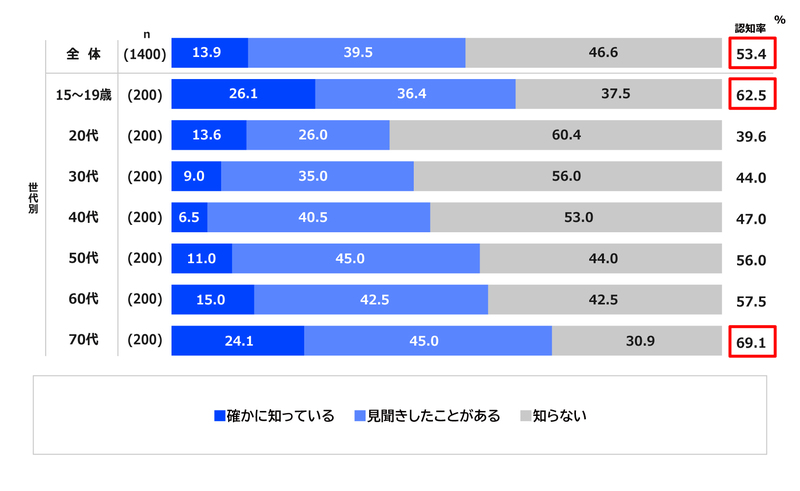 る」の合計)は、53.4%。前回調査(46.6%)より6.8ポイント上昇。世代別では、70代(69.1%)