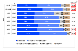 要だと思う」の合計)は82.9%。世代別では、70代(94.8%)が最も高く、60代(88.5%)、15~