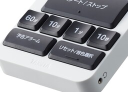 機能:タイマー(カウントダウン)、予告アラーム、音声ガイド、LEDライト点滅、バイブレーション、音量切替(大・小・消音)、操作ロック、イヤホンジャック
