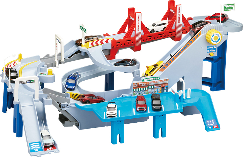 かんたん変形でコースがのびる!ちぢまる!たくさんのトミカがびゅんびゅん走る高速どうろ