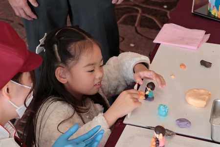 また、贈呈式後には、ケーキの世界観に登場する女の子をマジパンで作るパティシエ体験も実施し、世界にひとつだけのオリジナルマジパン制作を楽しんでいただきました。