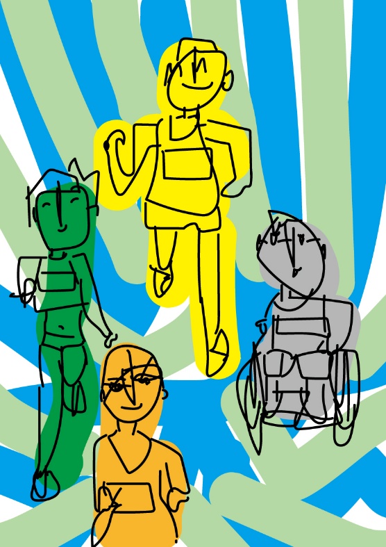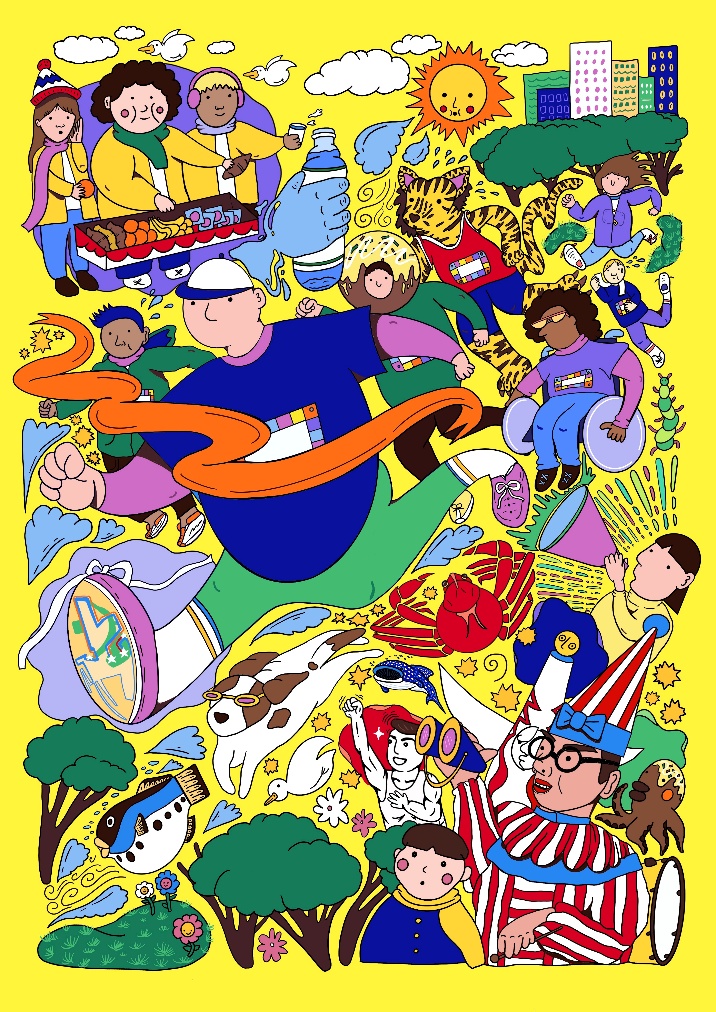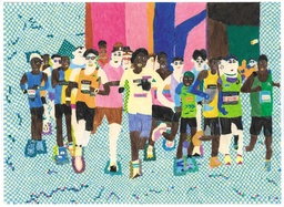 ・また、障がいのある方が描かれたデザイン画は、老若男女のたくさんのランナーを描き分けながら、マラソンの走りの勢いある動きが感じられる作品であり、大阪マラソンの華やかなノベルティグッズになることが期待できる作品である。