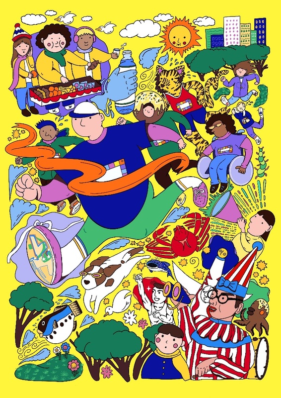 また、ノベルティグッズのデザイン画については、国際障害者交流センター ビッグ・アイの協力を得て、障がいのある方々から10作品をご提供いただきました。