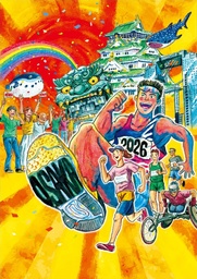 ・大会告知ポスターのメインビジュアルには、大阪マラソンらしさを伝えるのにふさわしい、賑やかで活気あるイメージの作品が最優秀作品に選ばれた。