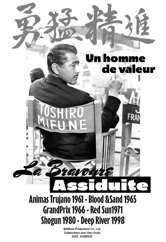 そしてフレンチヴィンテージを得意とする〈AUBERGE(オーベルジュ)〉らしく、〝もしパリのチャイナタウンにあるミニシアターが三船映画のポスターをつくったら?〟という架空のストーリーに基づいた、粋なデザインのTシャツも制作しました。