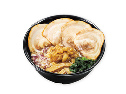 商品開発部のヒットメーカー藤原が開発したラーメンで、2025年6月から期間限定で販売し、ご好評いただいた「【藤原系】こってり背脂濃厚まぜそば」の第二弾。毎朝店舗でとる魚介出汁をベースに、旨みの詰まった極上スープに仕上げました。食べ応え抜群の4枚のチャーシューとほうれん草、レッドオニオン、メンマ、たっぷりの背脂をトッピング。濃厚さの中に、魚介の旨みがあとを引く一杯です。