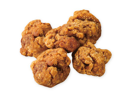 にんにくの風味がしっかり感じられる醤油ベースのタレに鶏もも肉を漬けこみ、大きな釜で回転させることで、肉を柔らかくし、味を染み込ませています。注文を受けてから揚げるため、できたてをご提供。にんにくが効いた食べ応え抜群の唐揚げです。