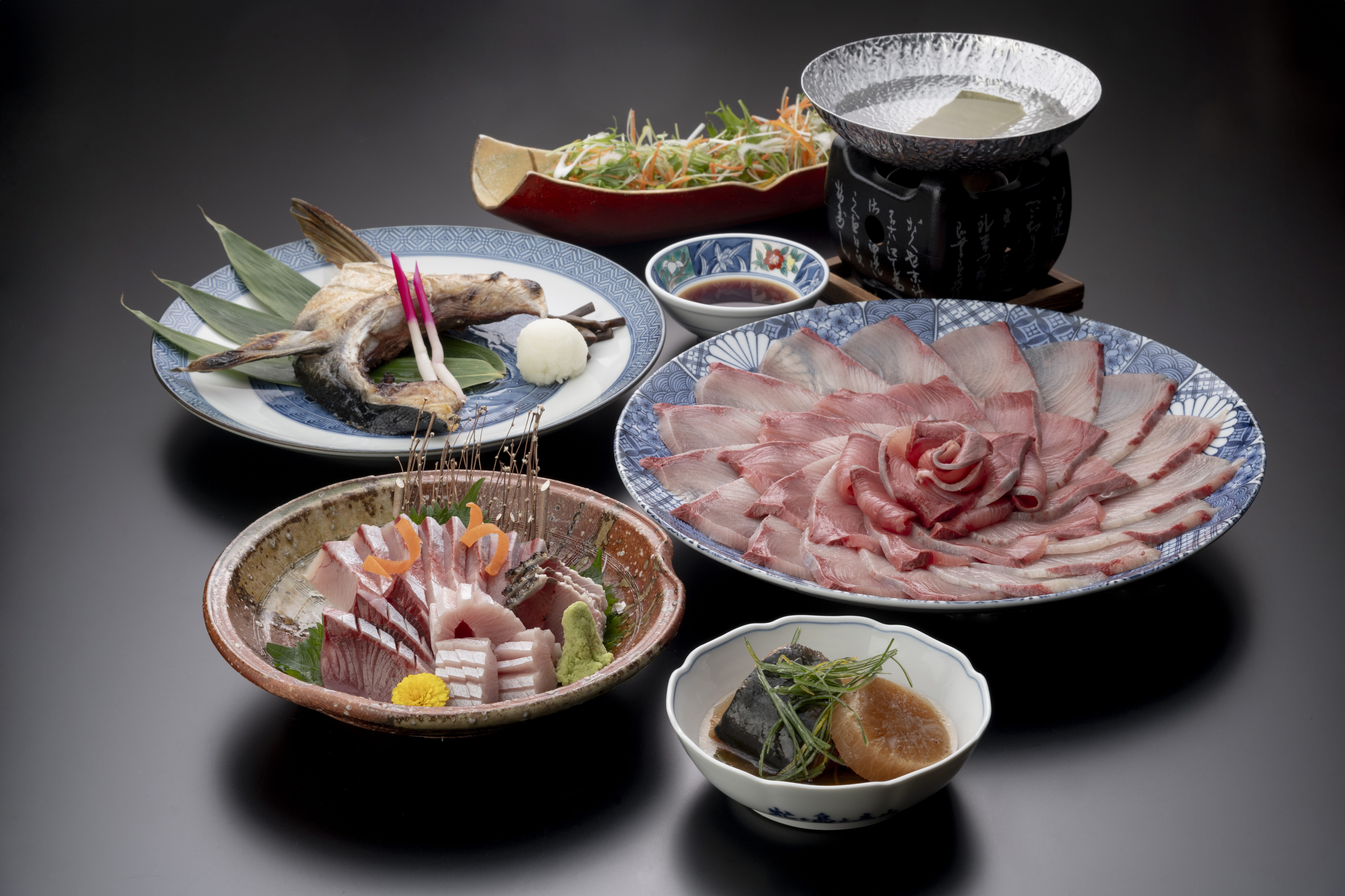 ぶり料理(ぶりの刺身、ぶりしゃぶ、ぶり大根など)を味わえます。