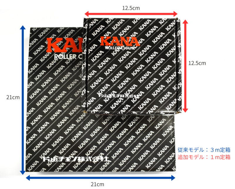 従来、当社では箱入りチェーンについて3m単位での販売でしたが、必要分のみを購入したいというお客様のニーズに応えるため、より扱いやすく、在庫管理にも適した箱入りの“1mチェーン”を新たにご用意しました。