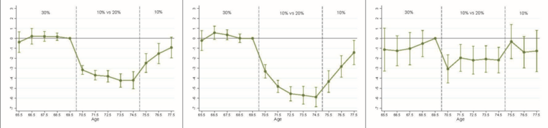 1番目・2番目・4番目の結果は、過去に行われてきた研究結果と整合的ですが、3番目の結果はそうではありません。3番目の結果は、75歳を過ぎて窓口負担は1割で同じになっているにもかかわらず、70~74歳で2割負担だった人たちは、制度改正前から継続して1割負担の人たちよりも医療費が少ないことを意味しています。さらに、4番目の結果を考慮すると、健康状態や健康行動が良くなったことで医療費が減少したわけではなく、むしろ、2割負担の期間での受診習慣が1割負担になっても継続していることを示唆しています。