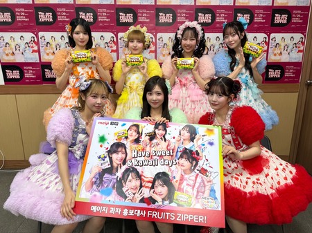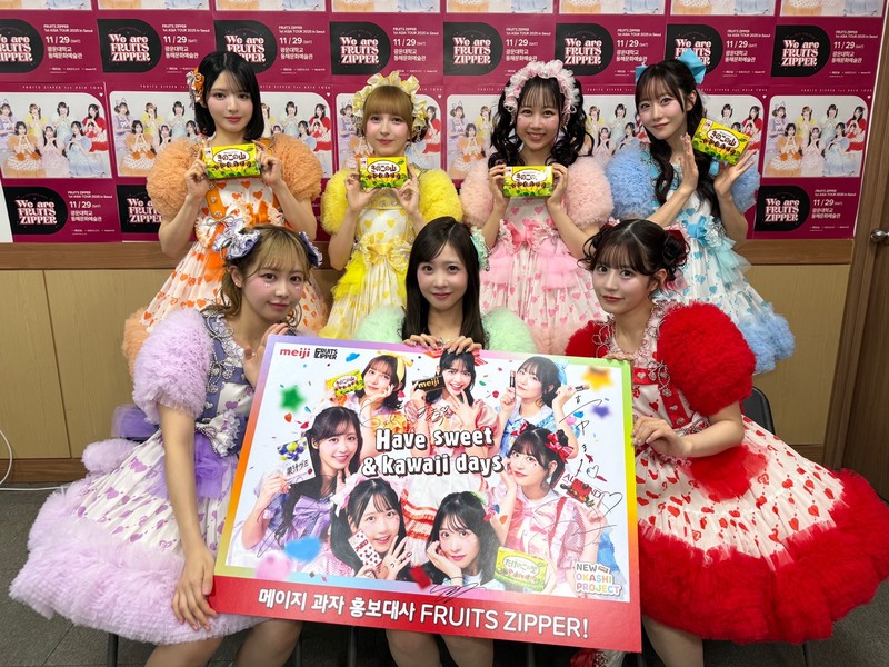 Meiji Co., Ltd., headquartered in Tokyo, collaborates with the seven-member idol group FRUITS ZIPPER, which is Meiji Sweets Ambassador, on the group's first Asia Tour called "FRUITS ZIPPER 1st ASIA TOUR 2025 'We are FRUITS ZIPPER'." Meiji's wish to make every day "a little bit happier" for people worldwide through sweets, and the activities of Harajuku, Tokyo-based FRUITS ZIPPER as the idols shoot for the world, came together to keep ASIA TOUR 2025 rolling. After stops in Taipei and Shanghai, FRUITS ZIPPER delivered the tour's final live performance on Saturday, November 29 in Seoul, an event accompanied by TV commercial filming and Kinoko no Yama samples for fans.